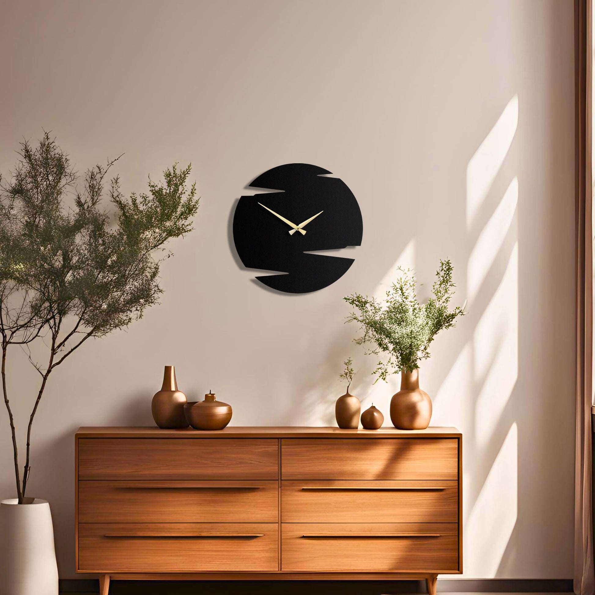Modern Geometric Wall Clock - Contemporary Black Design with Layered Cut-Outs